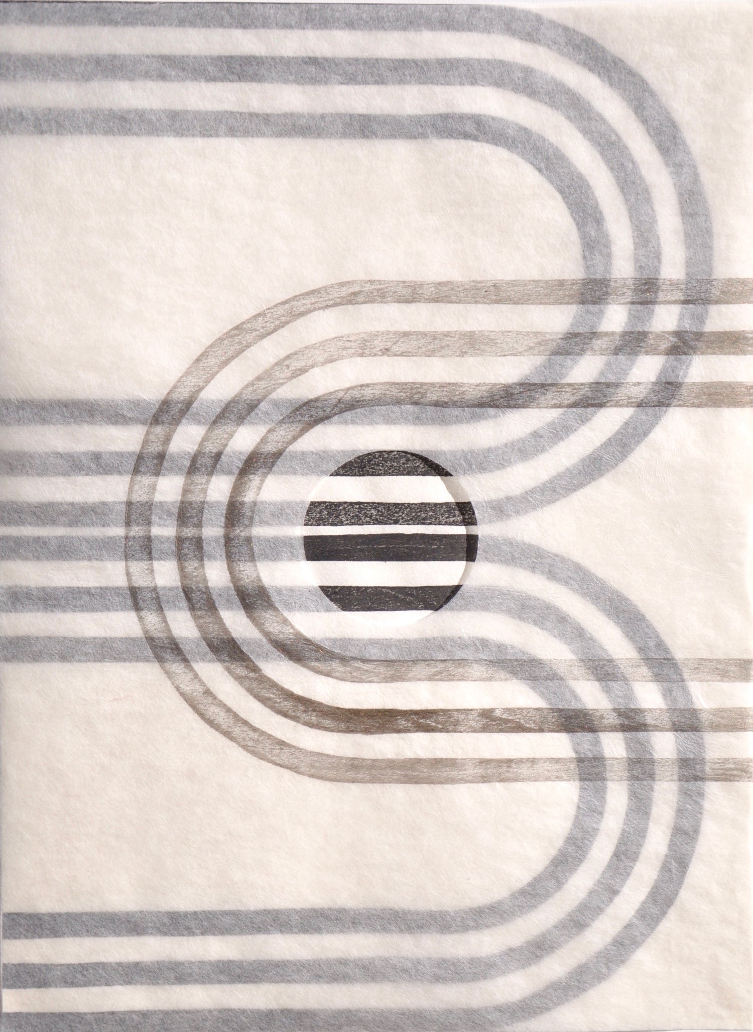 Untitled (circle one) - mokuhanga and stitching on Ogawa and Mino kozo