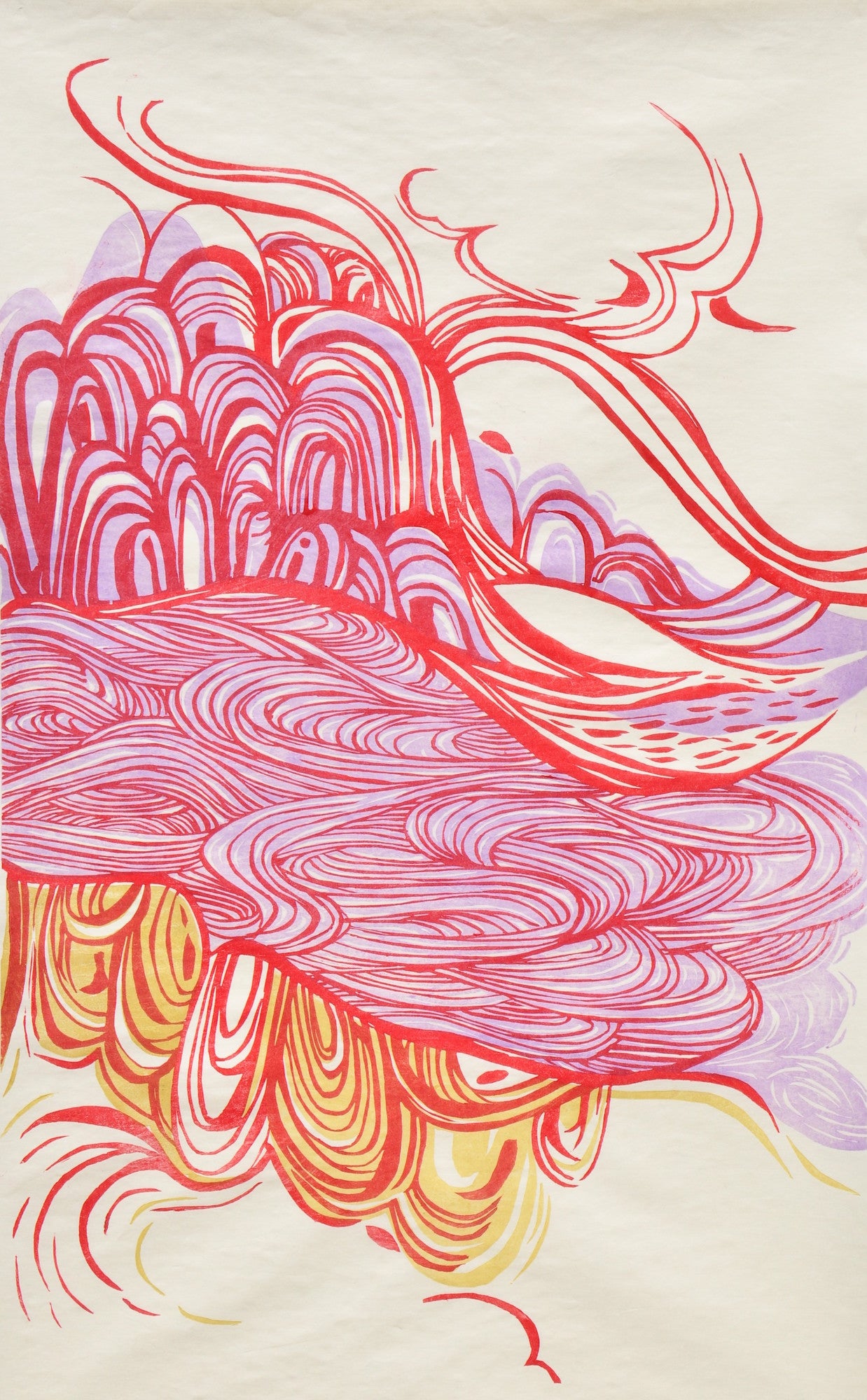 Red Landscape -mokuhanga on kozo