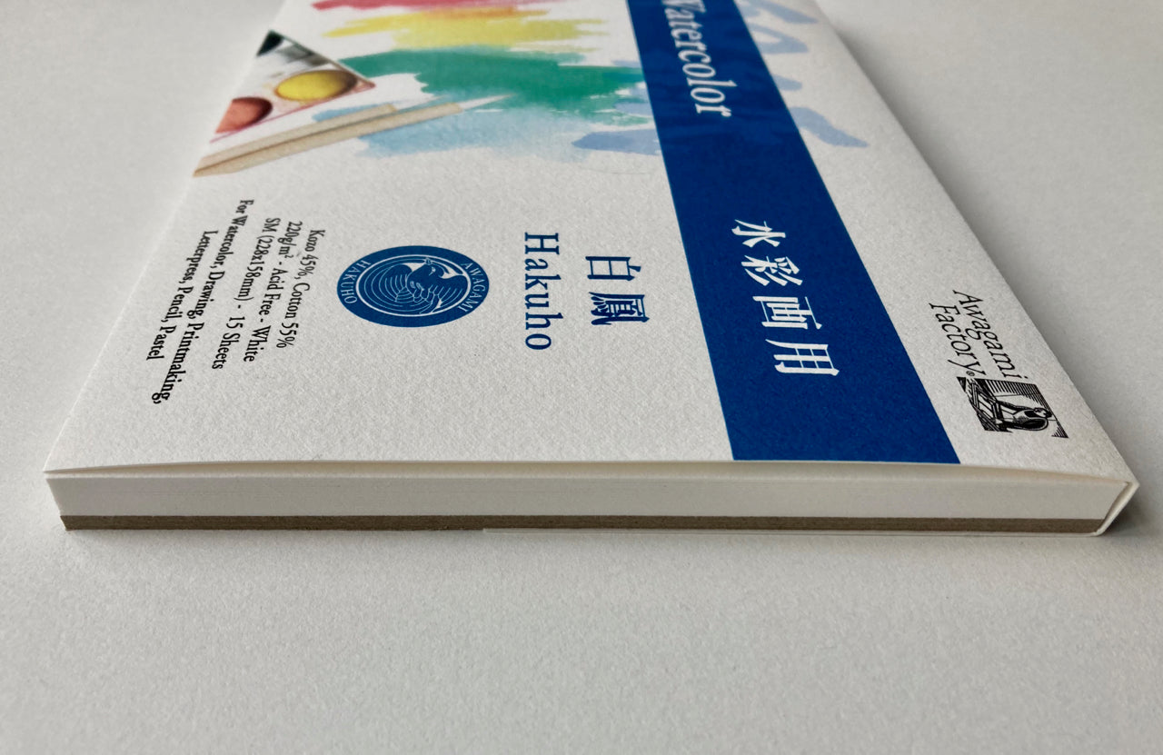 Hakuho paper is a museum quality watercolor paper made from a mix of kozo and cotton fibers. It is internally sized and has a lightly textured finish. It was developed for use with watercolor and gouache but may also be used for other wet and dry media including pen & ink, acrylic, pencil, and others. Hakuho Watercolor is made at the Awagami Paper Mill on the island of Shikoku.