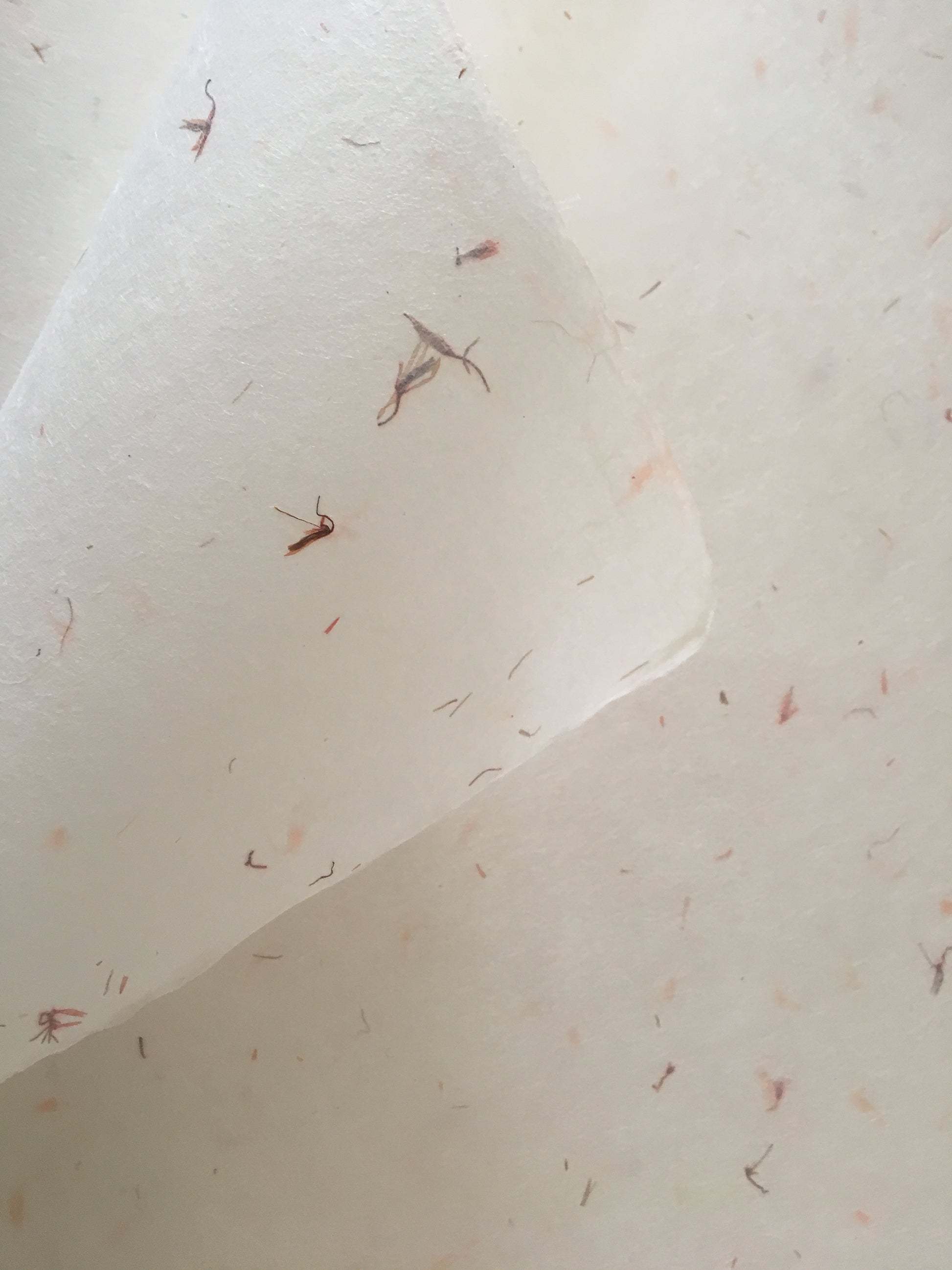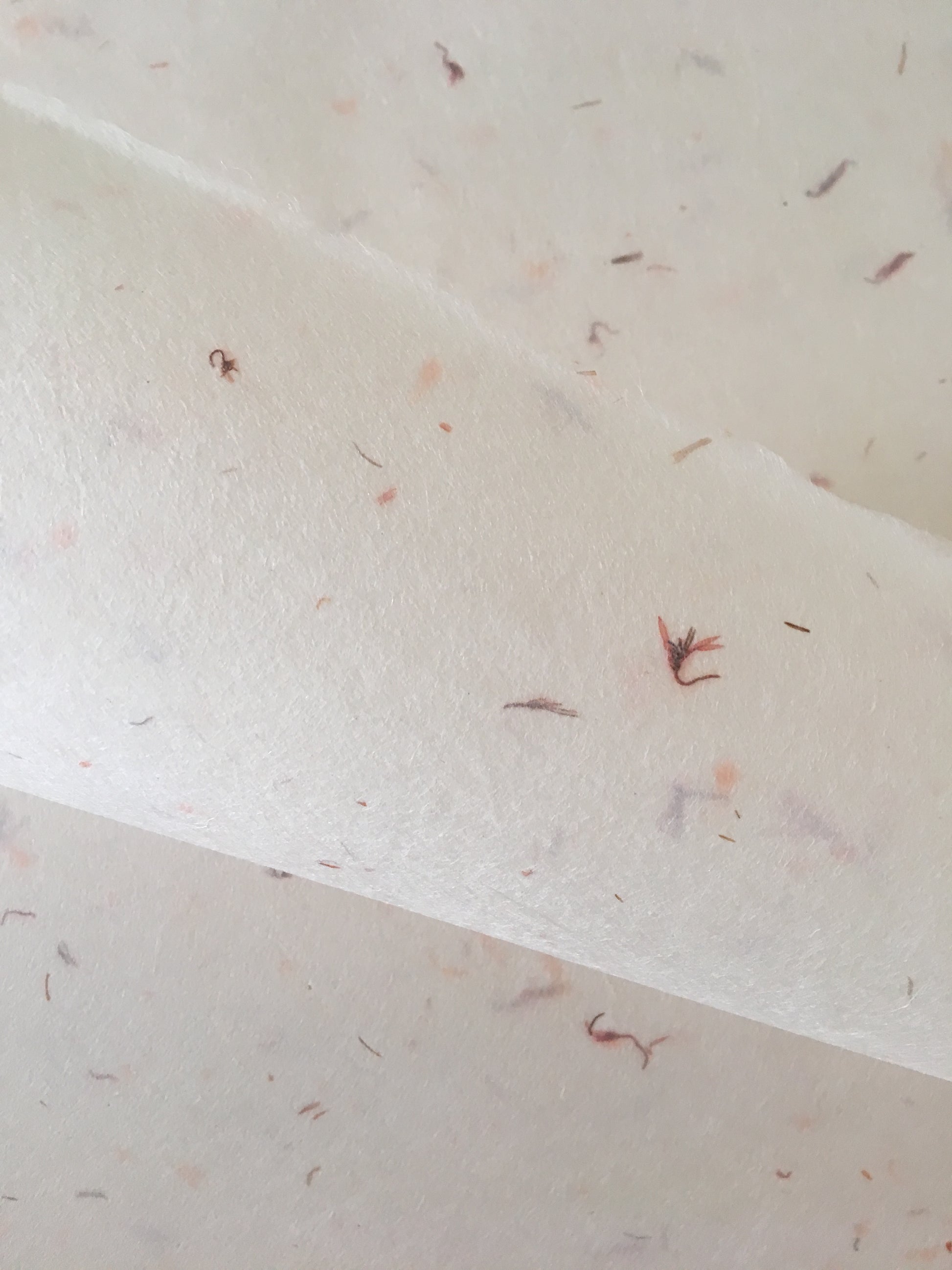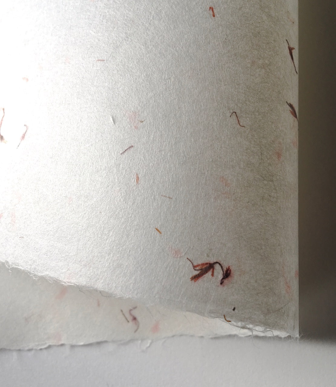 Hisako Uchimura makes paper in her one-woman shop near the town of Ogawa. This paper uses high quality Kozo from China, and includes Safflower petals. It is a beautiful, luminescent sheet of paper, good for decorative uses, lighting and interior design, as well as printmaking and drawing.
