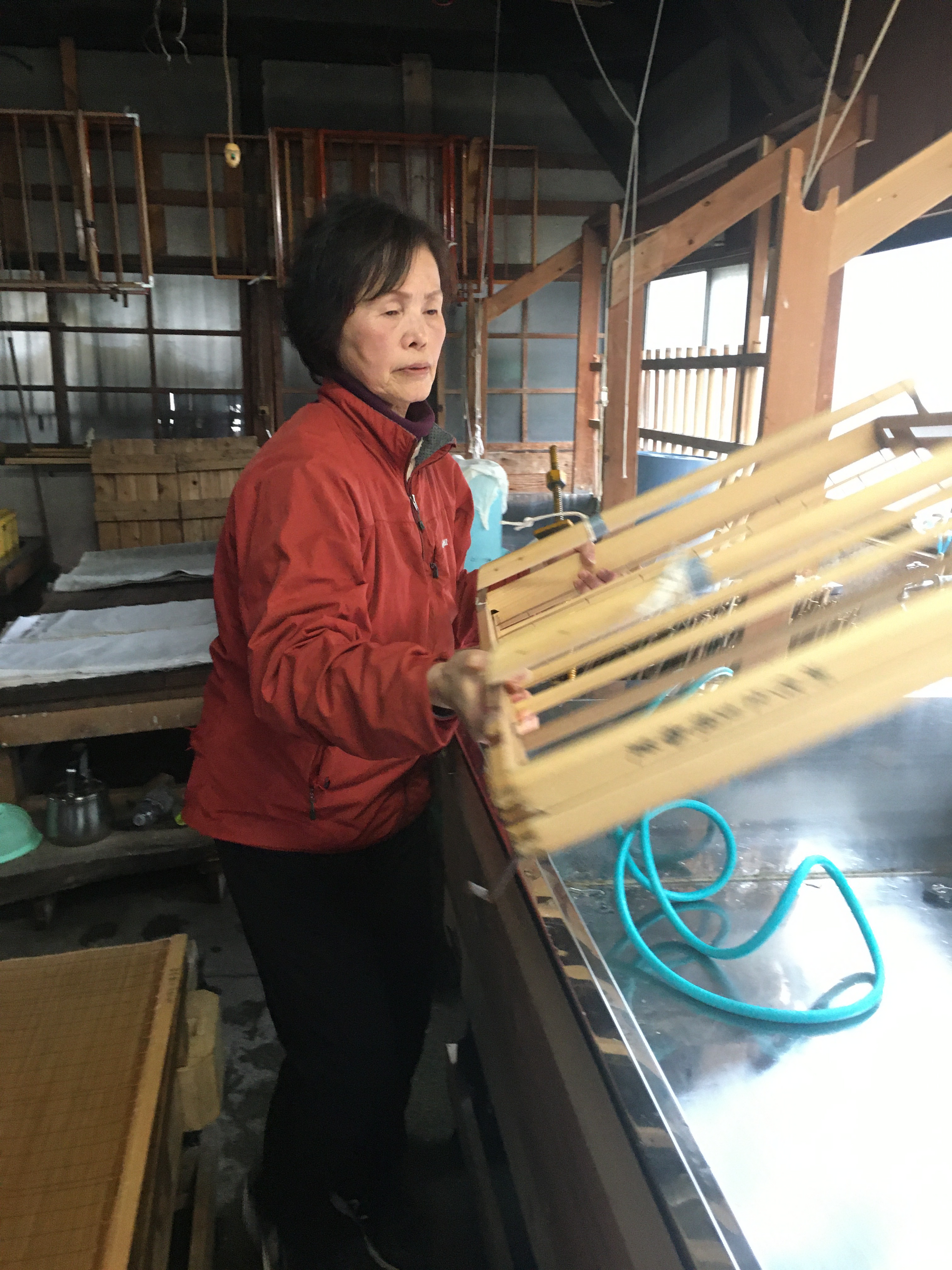 Hisako Uchimura makes paper in her one-woman shop near the town of Ogawa. She primarily makes Hosokawa-shi, using the finest materials, including Kozo she has grown herself near her studio. The paper has a beautiful quality and almost seems to shine in the light. It is a soft, warm sheet, both thin and durable.