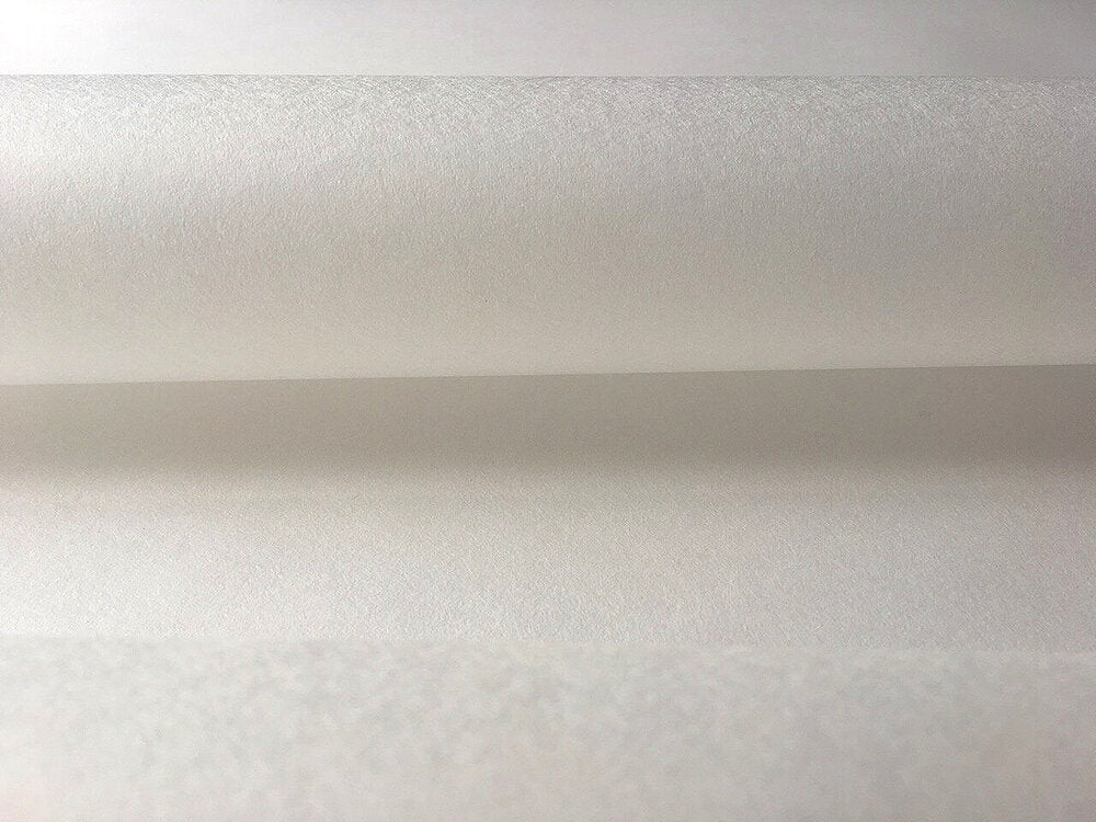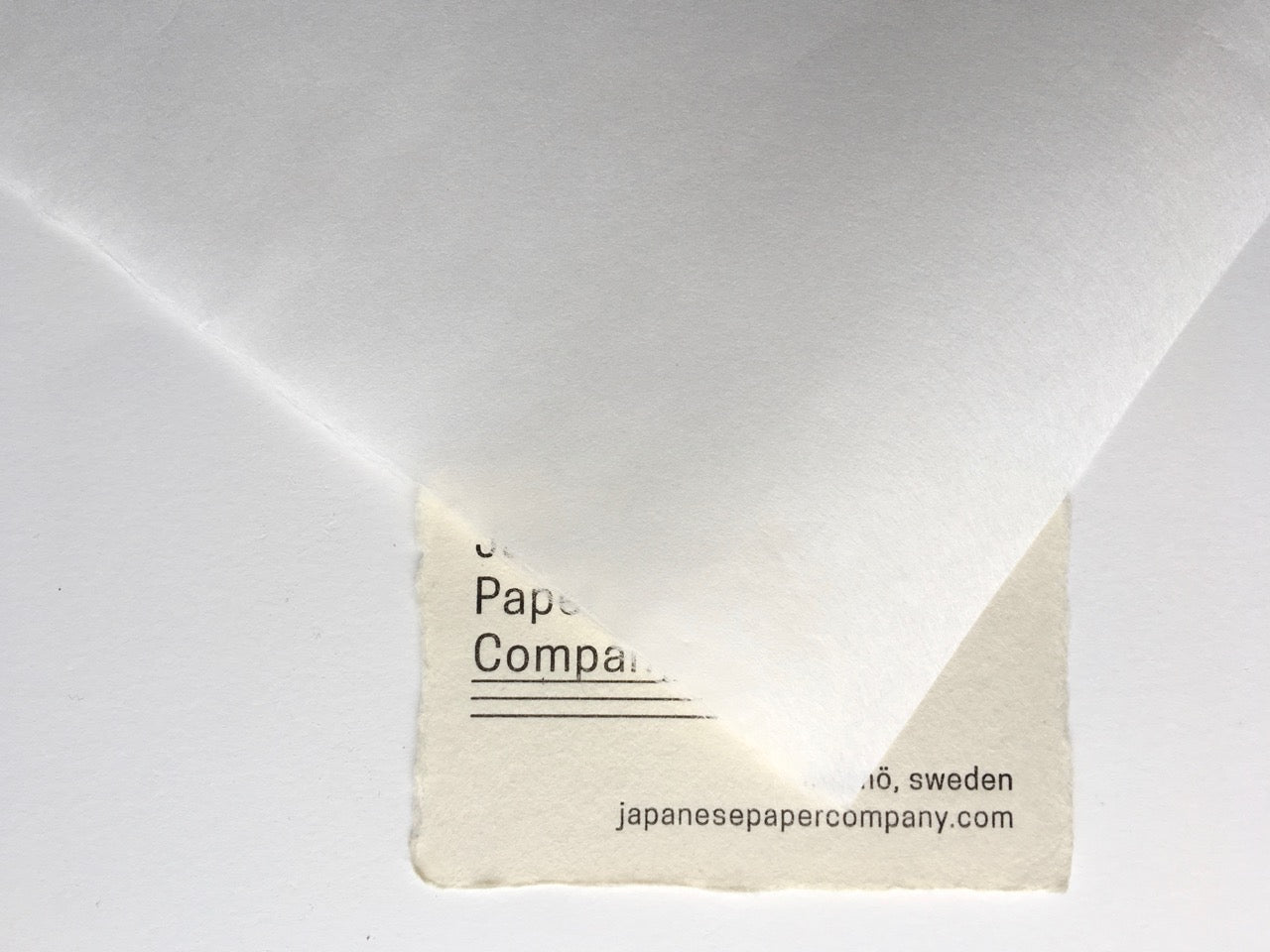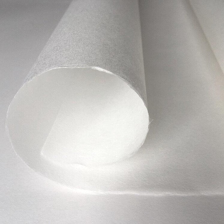 Kozo Thick White is a versatile paper with a bright white color and soft texture. It is semi-transparent. The front of the paper is slightly smoother than the back. This is currently only available from JPC in roll form, and is made at the Awagami Paper Mill on the island of Shikoku. A must-have for any artist working in large formats.