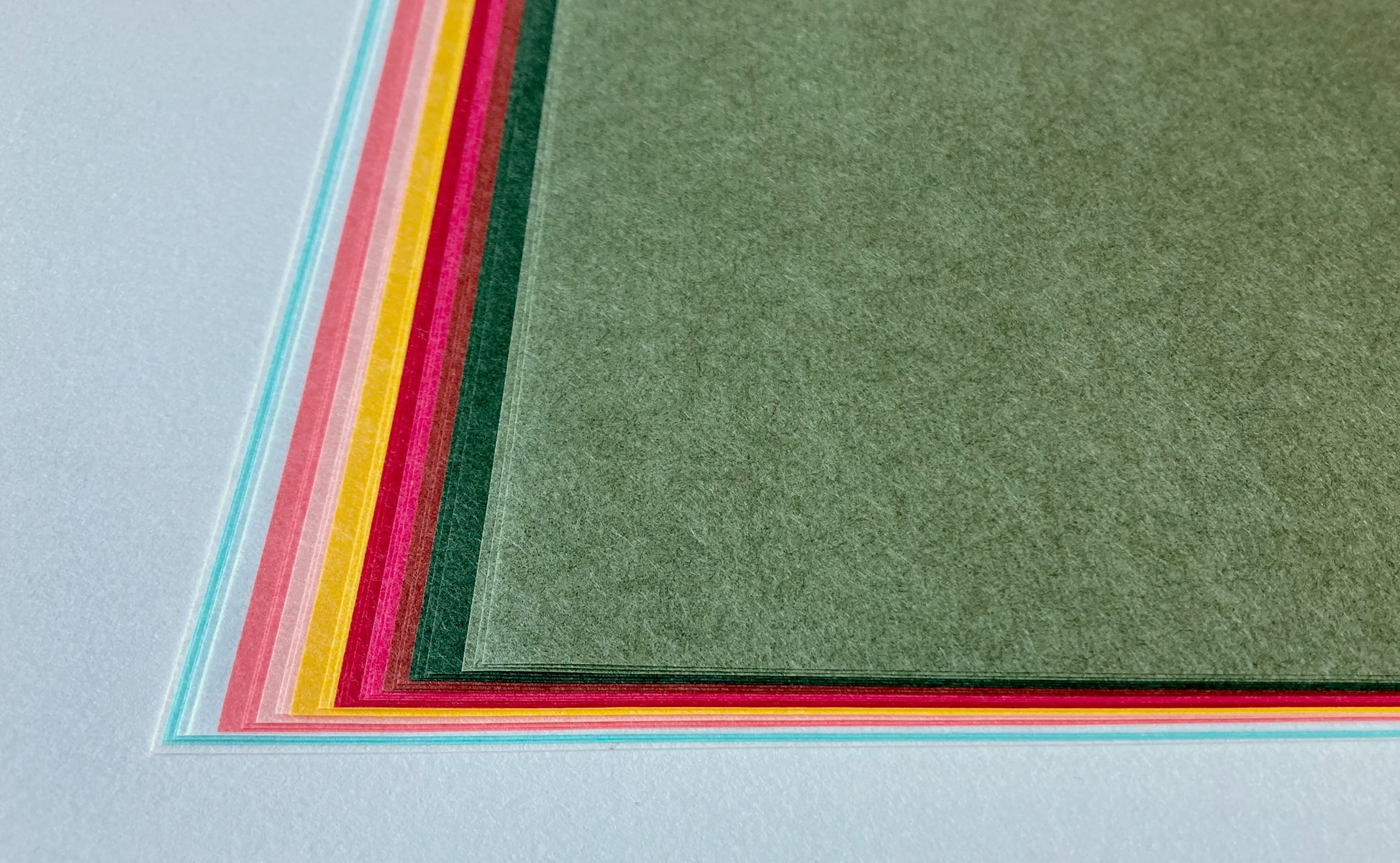 Origami packs made in Ogawa, Japan. These sheets of thin but strong origami paper have a subtle texture and just a hint of translucence. The sheets are dyed, so the color is the same on front and back. The colors are referred to as "neutral" - meaning they do not have any pattern. Each package contains 30 total sheets, with 3 sheets each of 10 different colors.