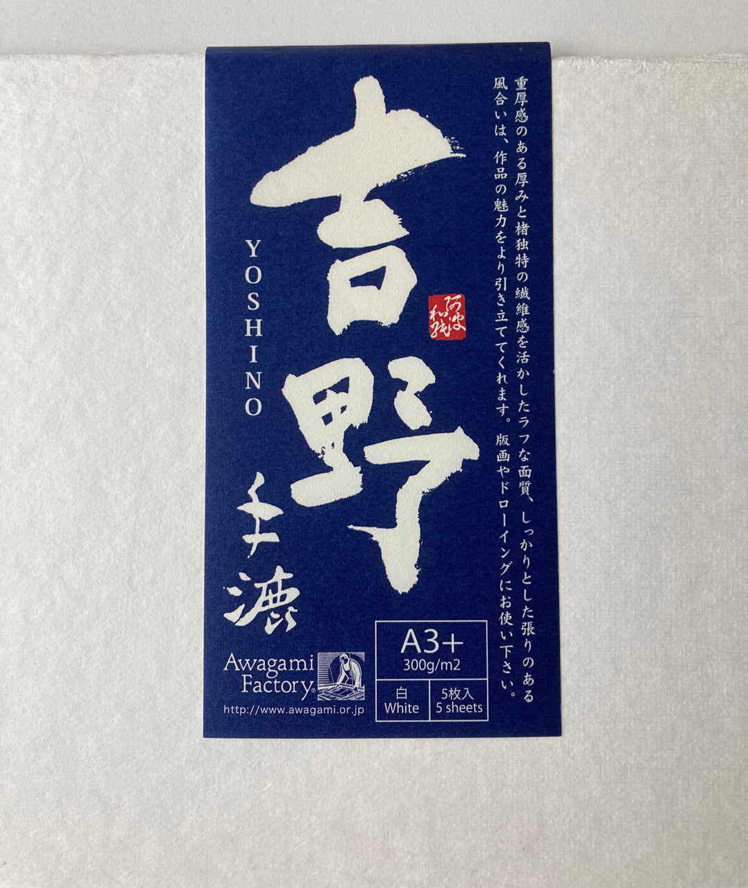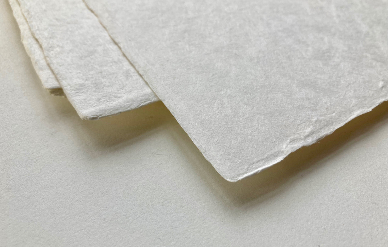 Yoshino is an impressive paper -- our thickest sheets, handcrafted in the "Tamezuki" method using a mix of kozo and pulp. The sheets have a gentle texture, and work brilliantly for both wet and dry media. Our customers have also used them for inkjet printing. The paper is only sold in 5 sheet packs. Yoshino Extra Thick is handmade at the Awagami Paper Mill on the island of Shikoku.